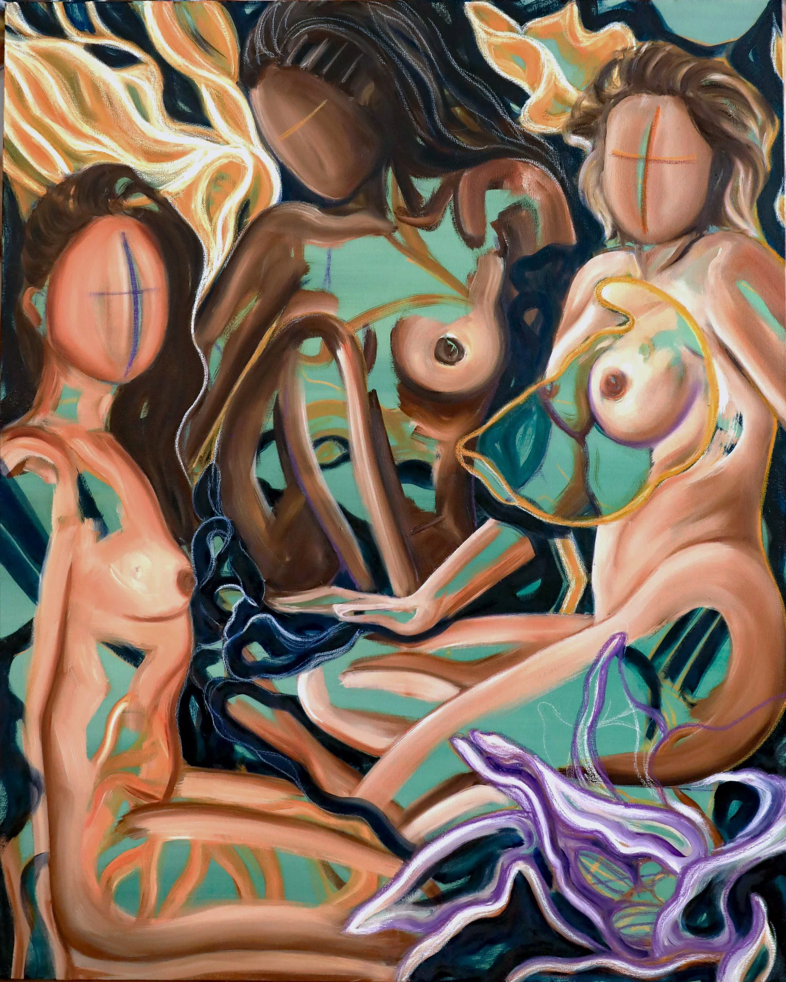 Fuego por Dentro y por Fuera,, 2023. Acrylic, Oil, and Oil Pastels on Canvas, 60 x 48 inches (152.4 x 122cm)