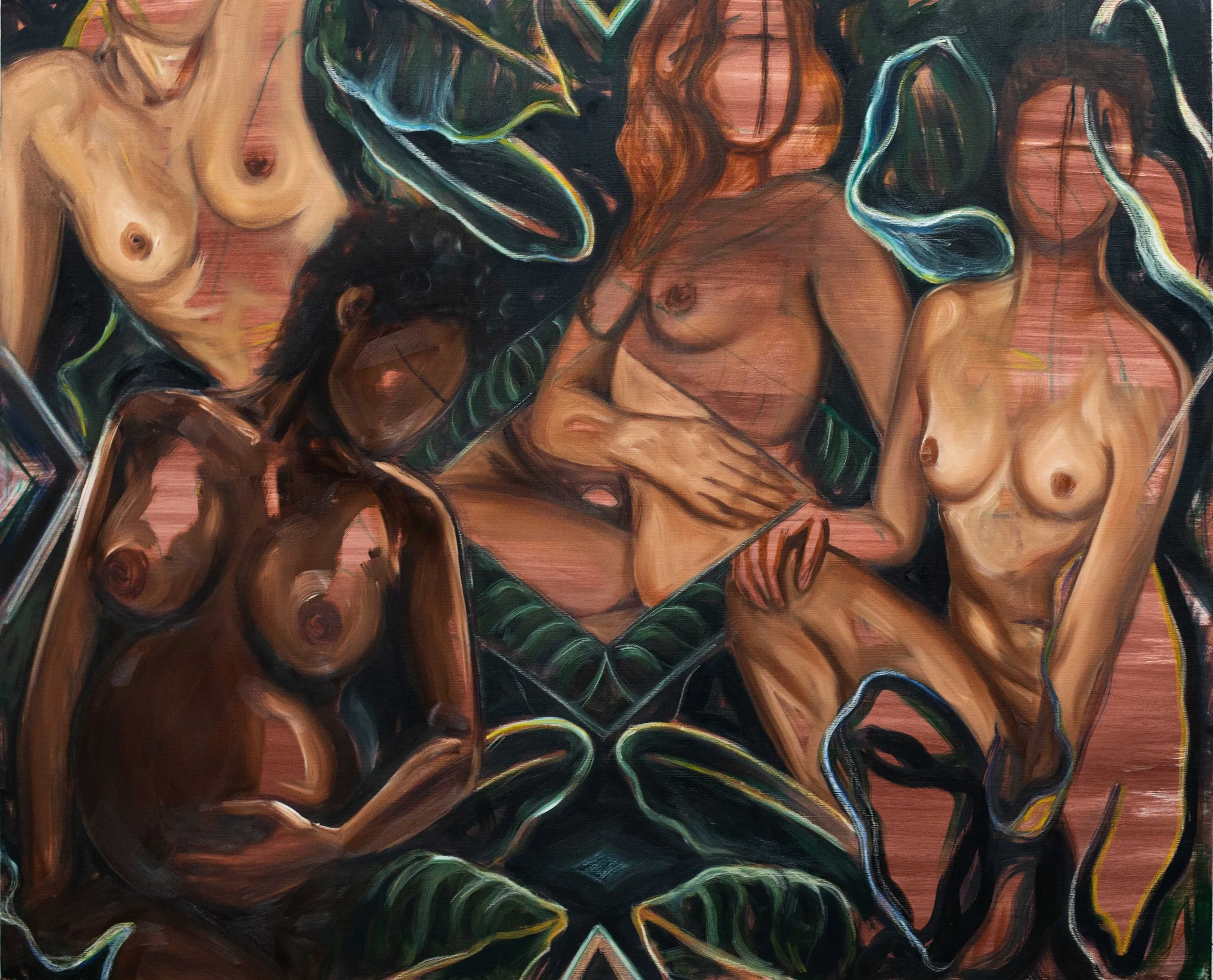 Hermoso Caos, 2023. Acrylic, Oil, and Oil Pastels on Canvas, 69 x 48 inches (152.4 x 122cm)